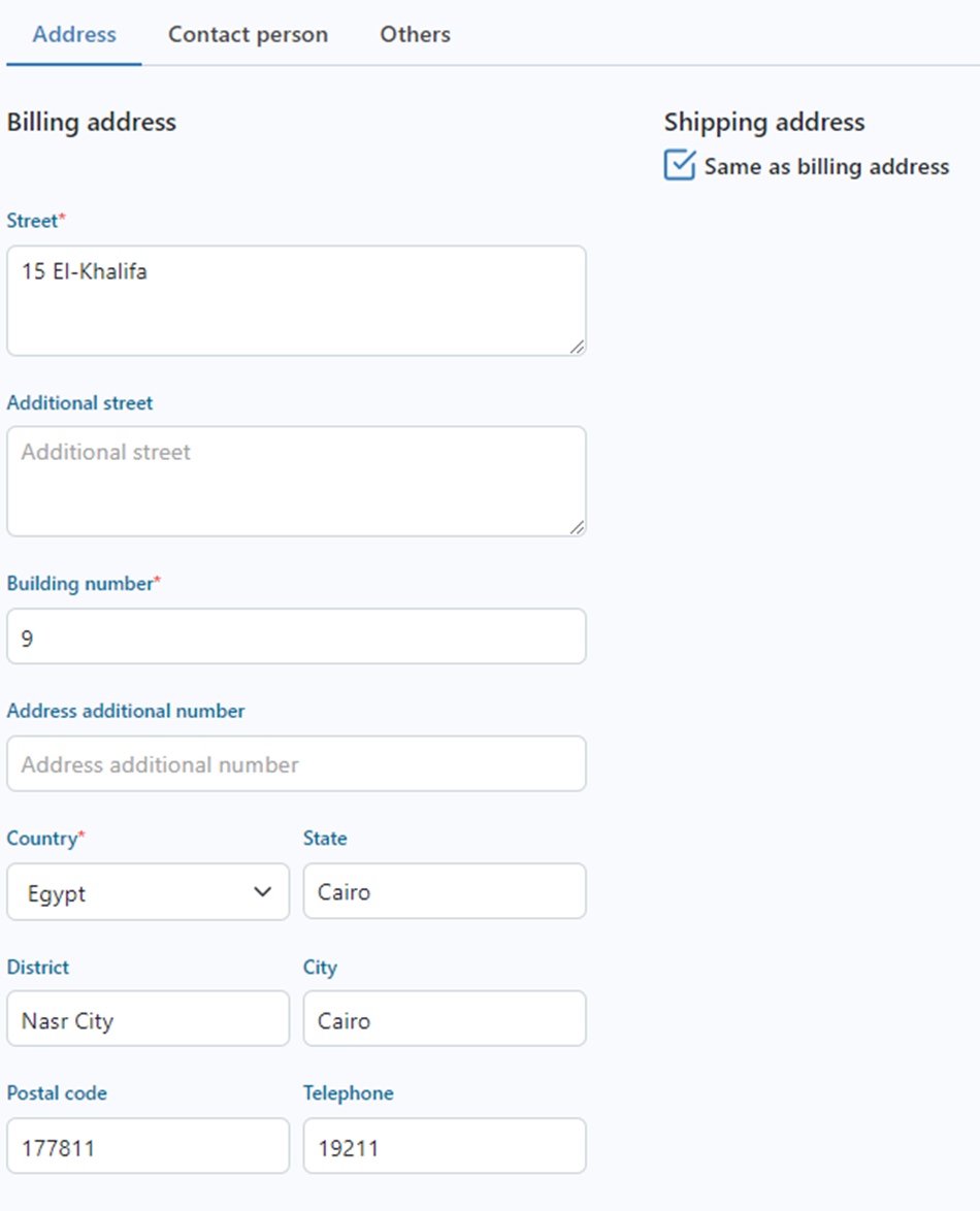 4- Fill in the address details as follows:
