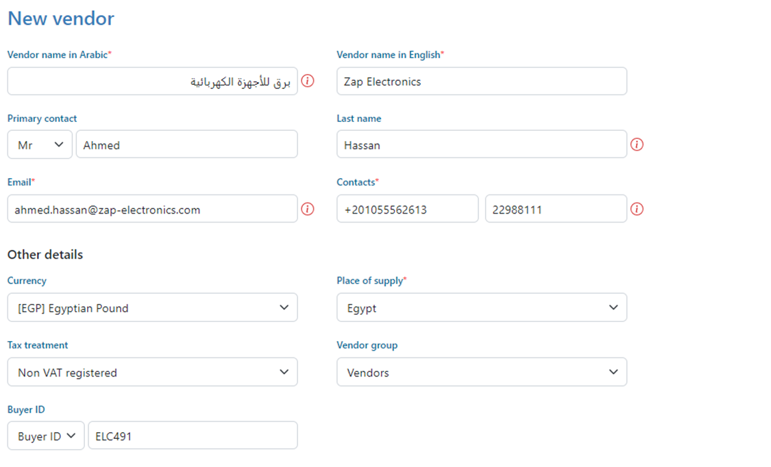3- Fill in the required Vendor details