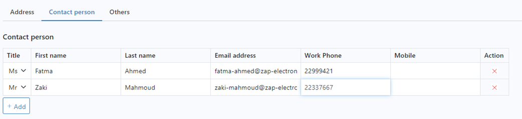 To add multiple contact persons, click on “Contacting Person,” then “Add,” and fill in the required data.