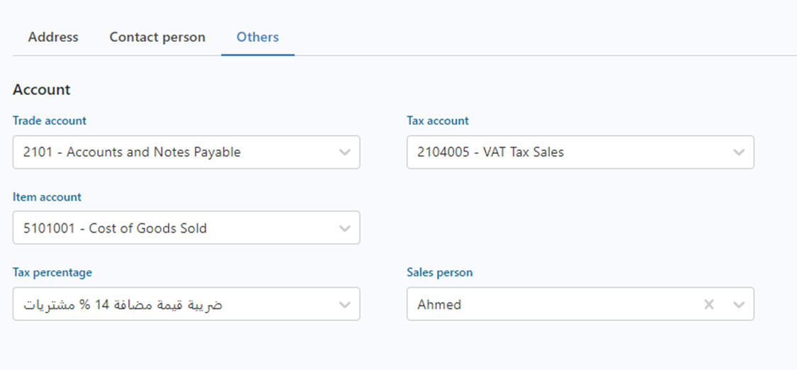 6.2- Tax Account: Choose the tax account from the added tax accounts. See how to add a tax account.
