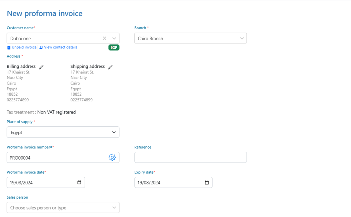 3.6- Expiry Date: Select the expiry date of the proforma invoice.