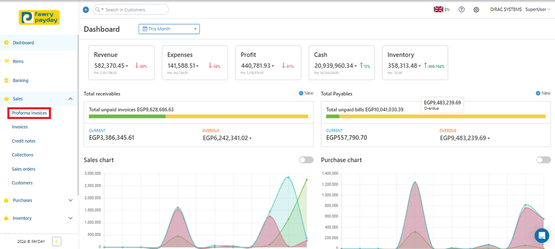 1- From the Main Menu, click on “Sales” and select “Proforma Invoices”.