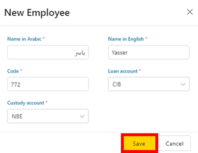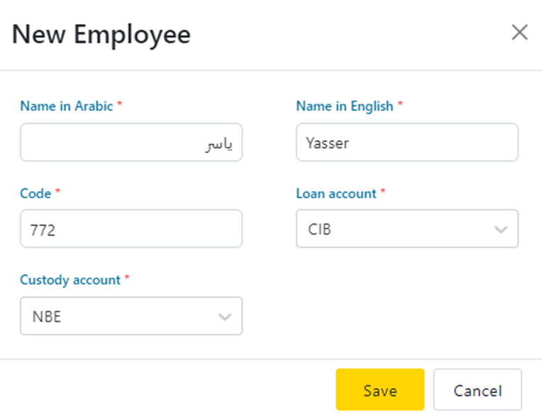 5- Fill in the required Employee details in the popup as follows:
