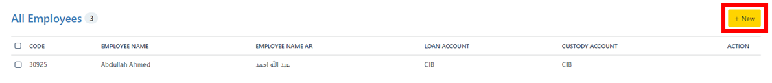 4- Click on “New” to begin creating a new Employee.