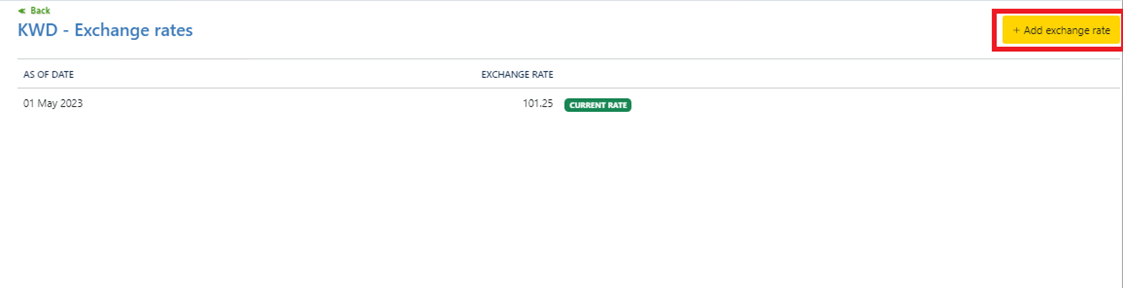 6 - Click on “Add Exchange Rate” A Pop-up will appear as in the figure below, fill the date and the rate to Egyptian pound.