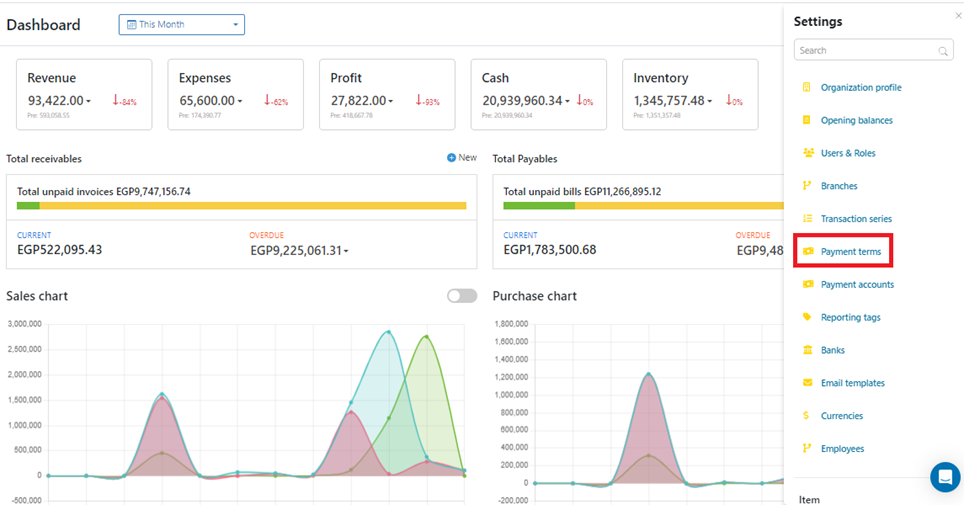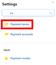 Alternatively, you can search for “Payment terms” using the search box then click on it.