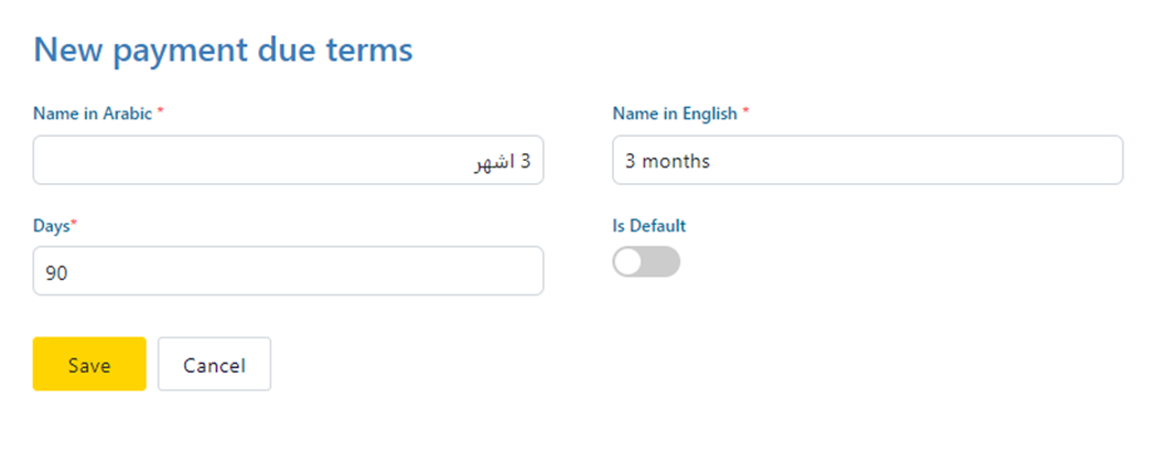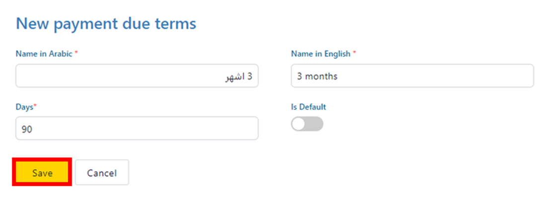 4.1- Name: Specify a name for the payment term in both Arabic and English.