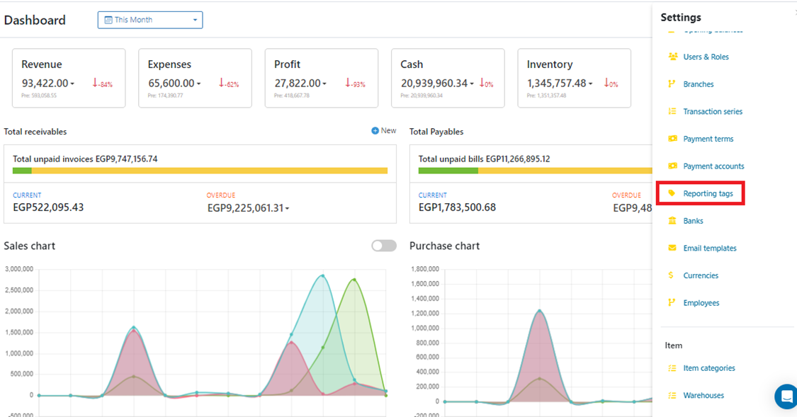 Alternatively, you can search for “Reporting tags” using the search box then click on it.