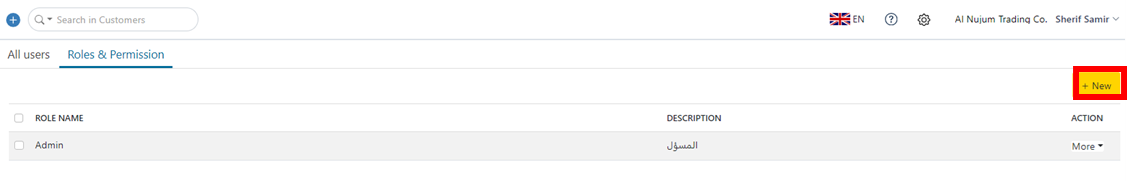 4- Click on “New” to create a new role or click on “More” for any existing role to edit, clone, or delete the existing role