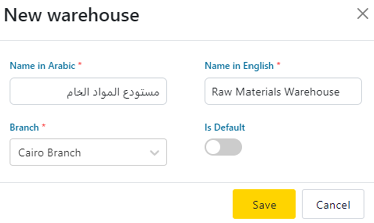 Is Default: Select whether this warehouse is the default warehouse of the selected branch