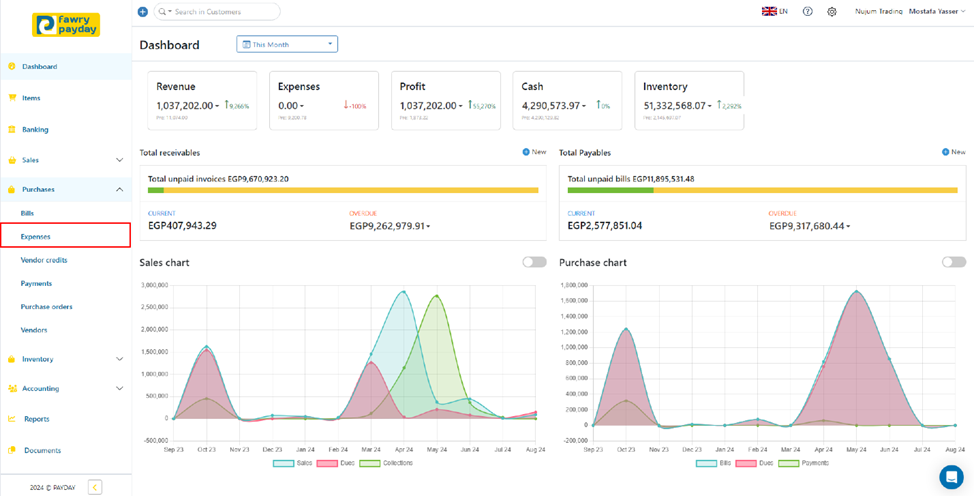 Currency: Choose the currency for the expense (e.g., EGP Egyptian Pound) —see how to add currency.
