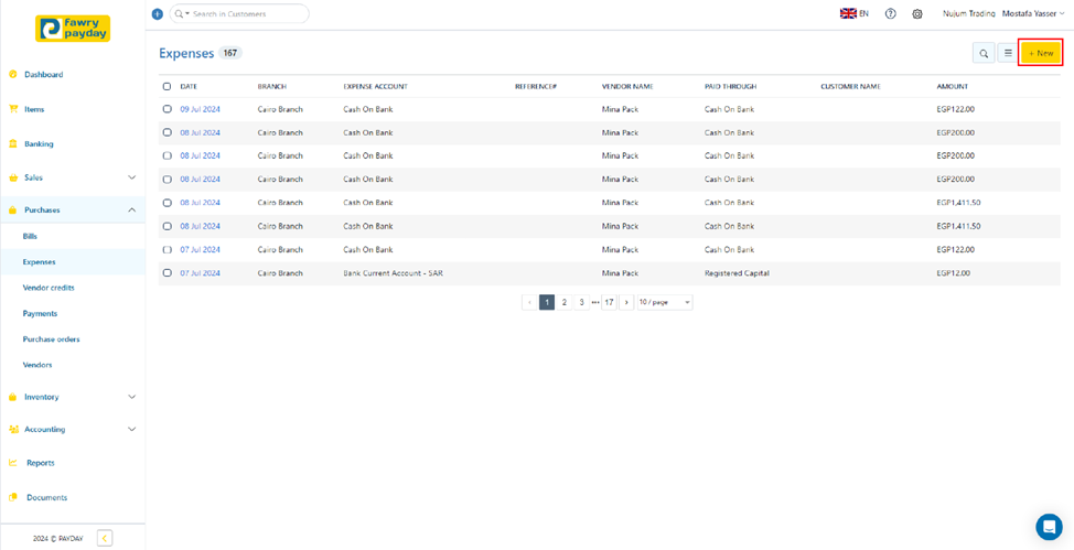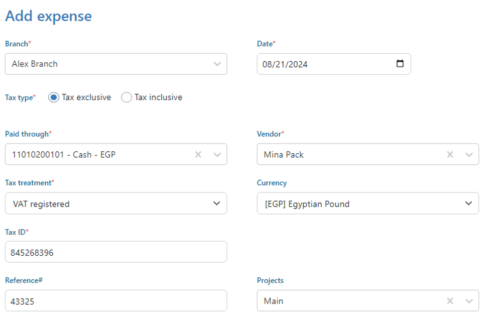Branch: Select the branch where the expense occurred from the added branches—see how to add branches.