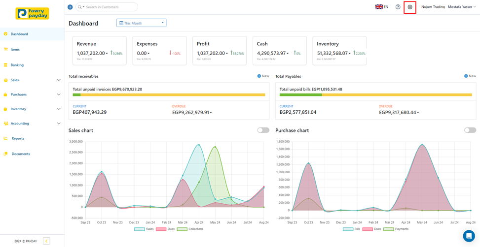 1. Navigate to the toolbar menu and click on the gear icon (Settings).