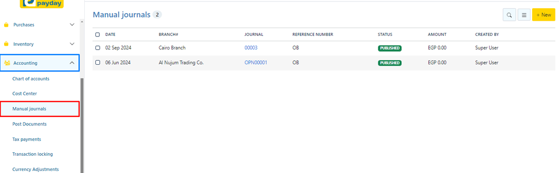 · Reference: Enter the Entry reference (e.g., Purchase Order number).