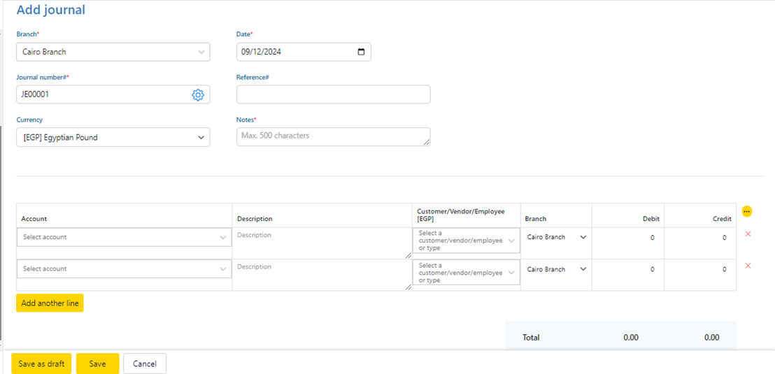 · Notes: Add any relevant notes pertaining to the journal entry.
